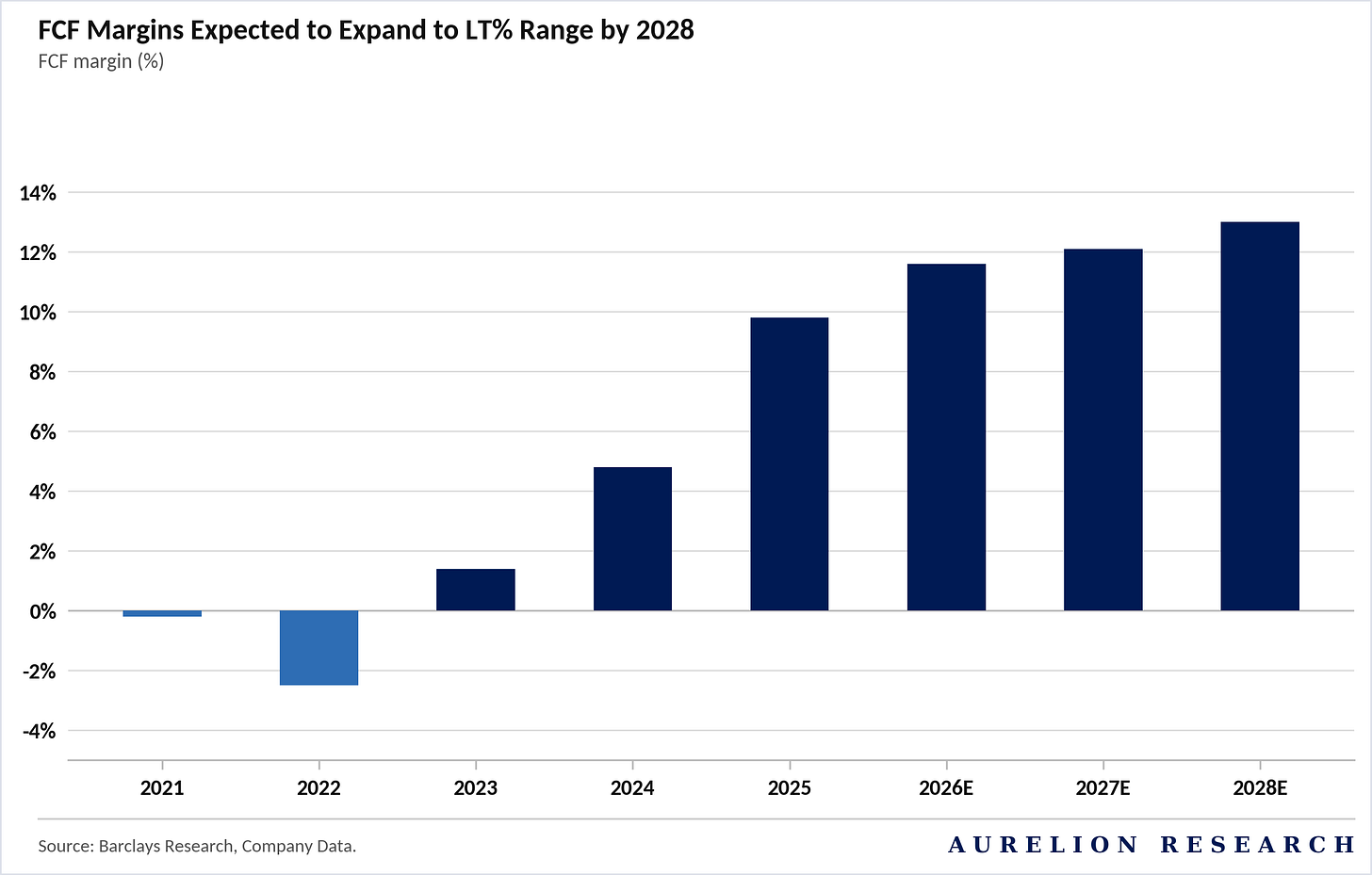 That operating improvement should show up very clearly in free cash flow. After moving through a lower-margin and more volatile phase, GEV is now reaching the point where higher earnings, better mix, and cleaner execution can translate into a much stronger cash profile. The FCF chart points to a business that could move into a low-teens margin range by 2028, which would represent a major step-up from recent history and place the company in a much stronger position from a capital allocation standpoint.
