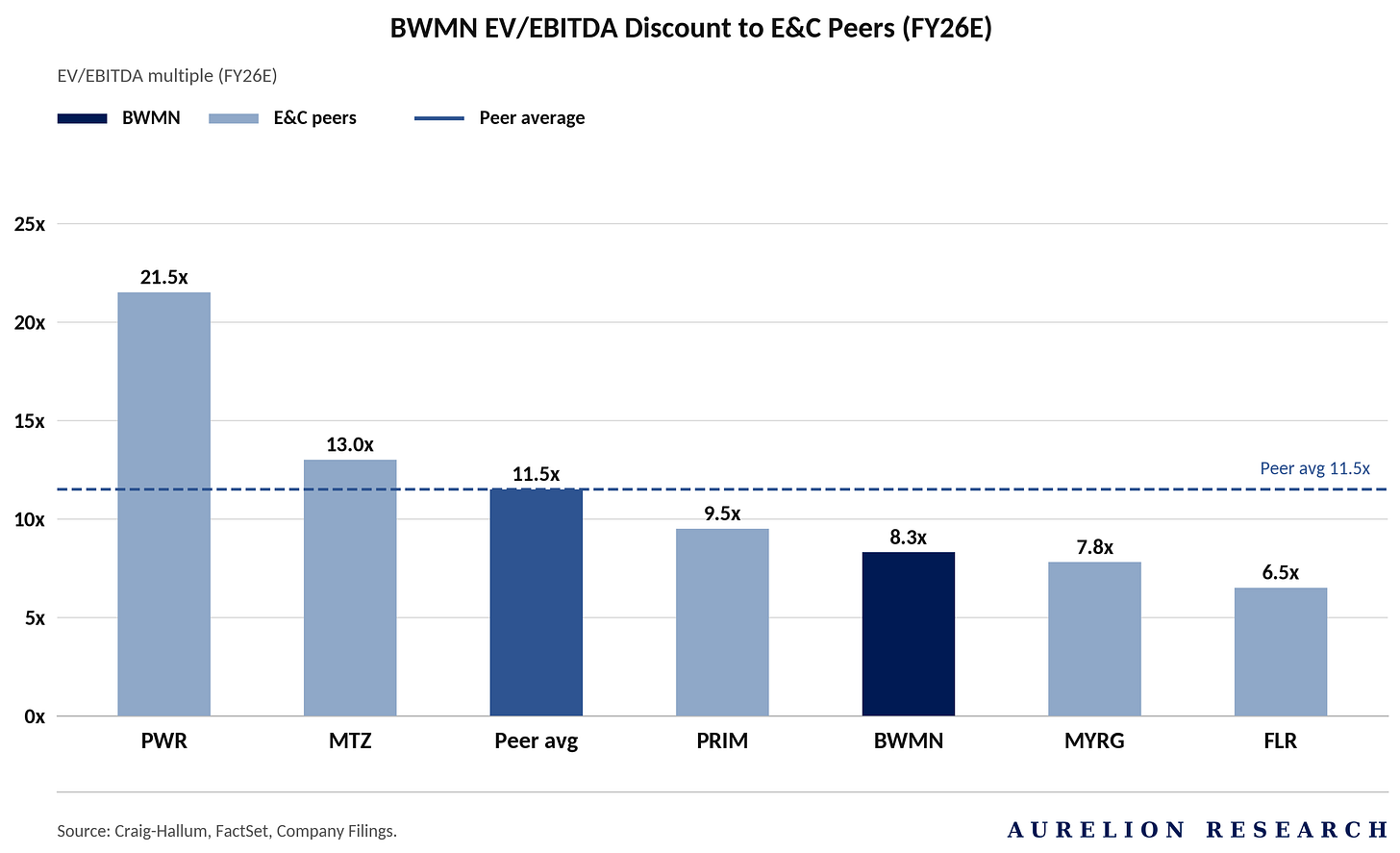 Valuation is where Bowman becomes especially compelling. The stock trades at a discount to the E&C peer group despite stronger growth, a record backlog, and a business mix that is becoming more relevant to the grid investment cycle with each passing quarter.