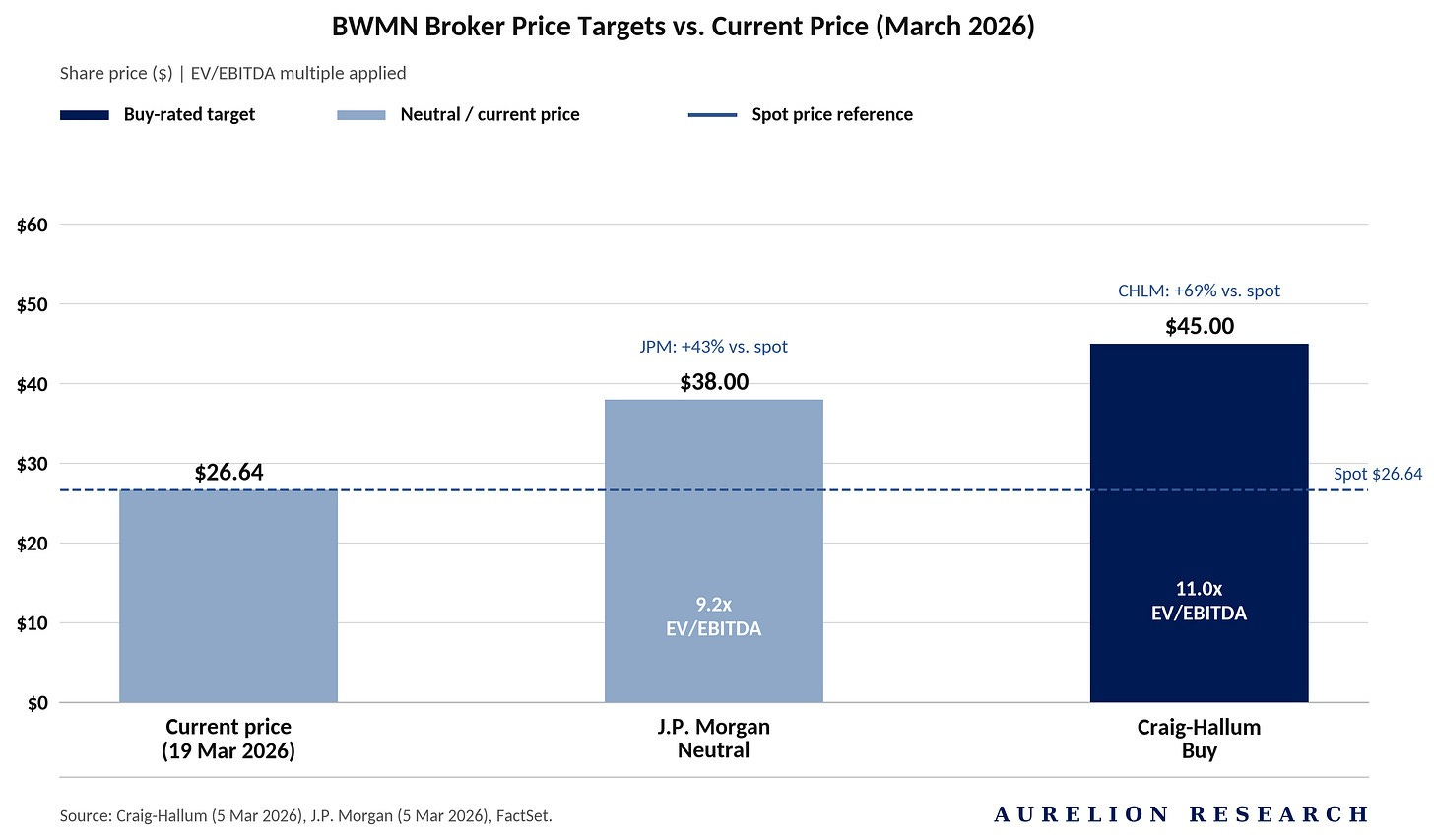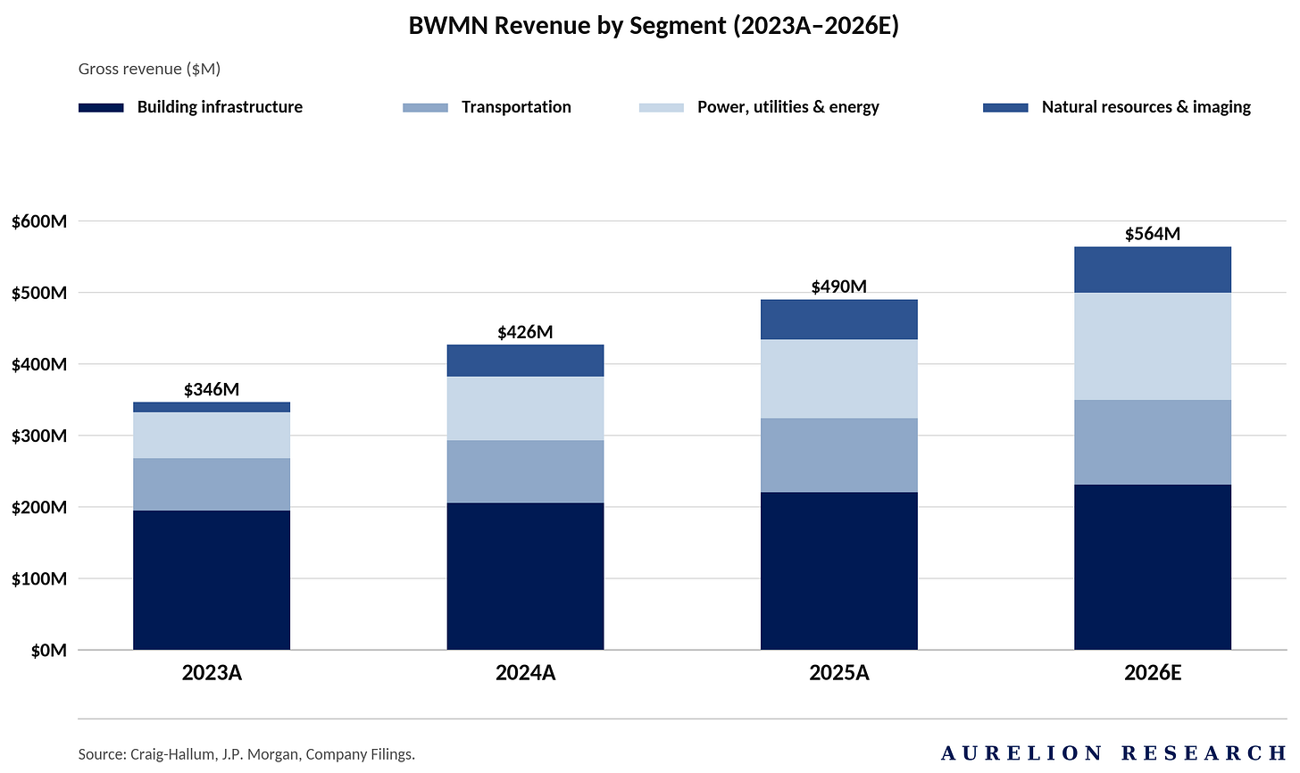 Margin expansion should follow naturally from that mix shift. As higher-value power and utility work becomes a larger share of revenue, the earnings profile should improve with it. BWMN has guided to 17.0% to 17.5% adjusted EBITDA margin for 2026, and Craig-Hallum views that range as conservative. That trend is already visible in the numbers.