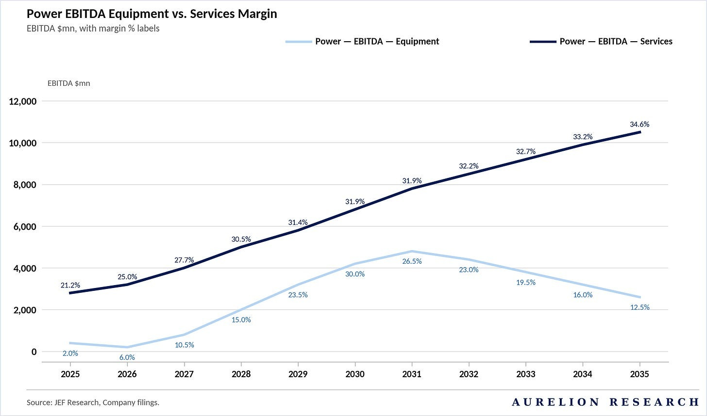 A key part of the thesis sits in the mix. The Power segment carries a large installed base, and service revenue attached to that fleet is far more attractive than equipment revenue. The margin chart makes that point clear.