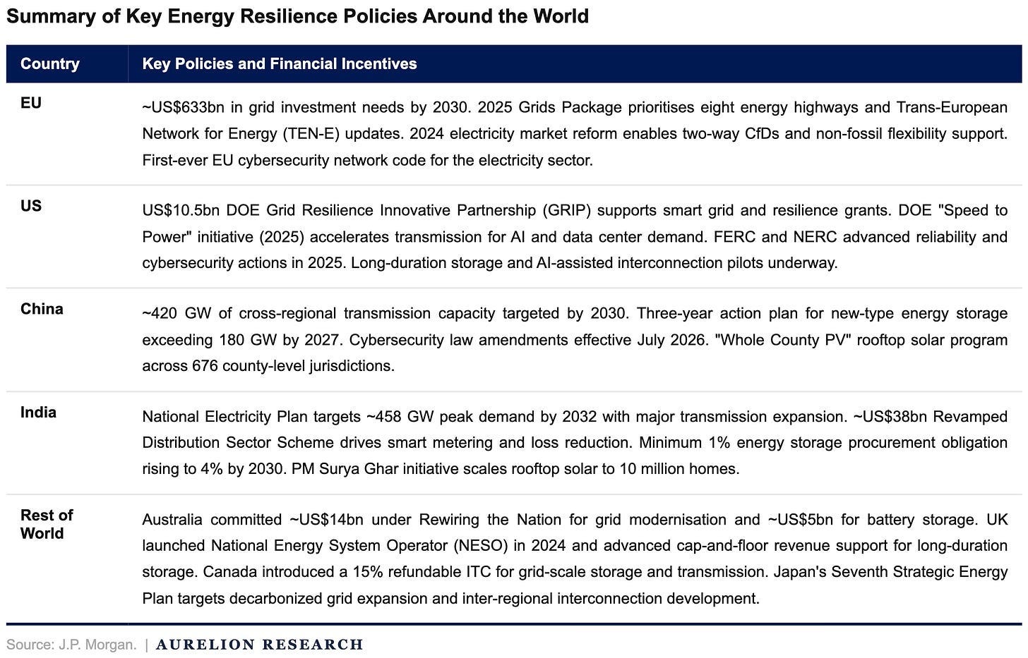As the table shows, the policy tools vary by country, but the broader direction is consistent. Grid modernization is receiving more support, resilience is becoming a bigger priority, and network investment is increasingly being treated as a central part of the energy transition.
